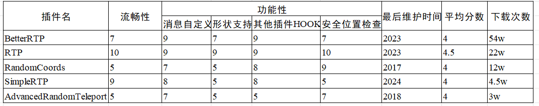 如果你不嫌麻烦,可以在 Excel 中分析插件的优劣并打分,下图比较了当前下载量前 5 的随机 TP 插件。