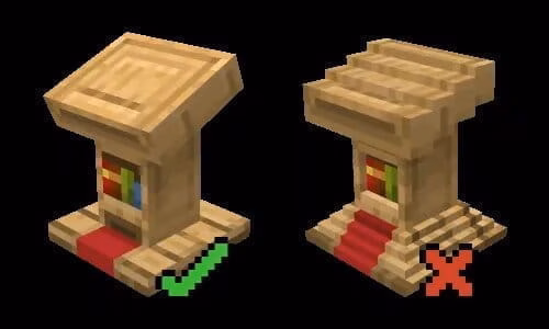 对方块纹理的要求不同于物品,方块纹理既需要考虑其单独出现,也需要考虑相邻放置的情况。将多个同类方块紧贴放置的行为称作「平铺」,如果在视觉上能感到纹理中有部分显著重复、凸显出平铺的图案,这种情况就需要加以纠正了。